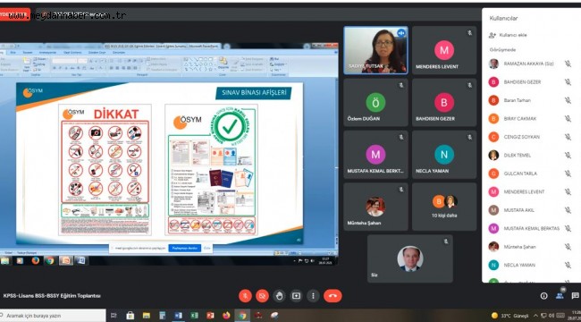 Rektör Savaş, 1 Ağustos Pazar günü saat 10.15’te başlayacak olan KPSS Lisans Genel Yetenek- Genel Kültür oturumuna 4 bin 468, aynı gün 14.45’te başlayacak olan Eğitim Bilimleri oturumuna ise 2 bin 686 adayın gireceğini belirterek ‘‘15 Ağustos Pazar günü saat 10.15’te başlayacak Öğretmenlik Alan Bilgisi Testine (ÖABT) 2 bin 236, yine aynı gün saat 14.45’te başlayacak ÖABT İmam-Hatip Lisesi Meslek Dersleri Alanı Sınavına ise 241 aday girecek. Nüfus cüzdanlarını/Kimlik kartlarını kaybedenler veya yeniden çıkarmak isteyen adaylar için, İl Nüfus ve Vatandaşlık Müdürlüğü 01 ve 15 Ağustos 2021 Pazar günleri 07.00 ile 14.30 saatleri arasında açık olacaktır. Adayların sınav günleri sabah oturumları için sınav binasına alınacağı son saat 10.00, öğleden sonraki oturum için saat 14.30’dur. Bu saatlerden sonra sınav binasına adaylar kesinlikle alınmayacaktır. Adayların sıkıntı yaşamamaları için bu hususları dikkate alarak hareket etmeleri önemlidir. Tüm adaylara başarılar diliyorum.’’şeklinde konuştu. 2021 KPSS Lisans ve KPSS Öğretmenlik Alan Bilgisi sınavları için Uşak Üniversitesi ÖSYM İl Sınav Merkezi Koordinatörlüğü tarafından 28 Temmuz Çarşamba günü çevrimiçi “Görevli Eğitimi” gerçekleştirildi. Eğitimde Sınav Organizasyon Koordinatörü Prof. Dr. Sadiye Tutsak tarafından, Bina Sınav Sorumluları ve Bina Sınav Sorumlusu Yardımcılarına yönelik, 2021 KPSS Lisans ve KPSS Öğretmenlik Alan Bilgisi Sınavları ile ilgili sınav öncesi, sınav günü ve sonrasında alınacak tedbirler ve Kovid-19 nedeniyle alınacak önlemler hakkında bilgi verildi.