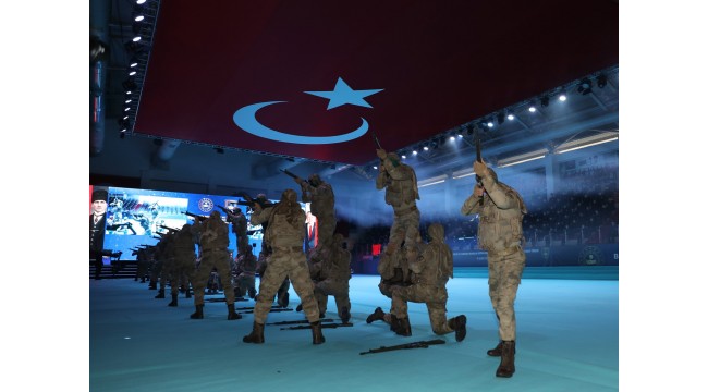 Bakan Soylu nun da katıldığı törende tüfekli hareketler gösterisi nefes kesti, salondaki
