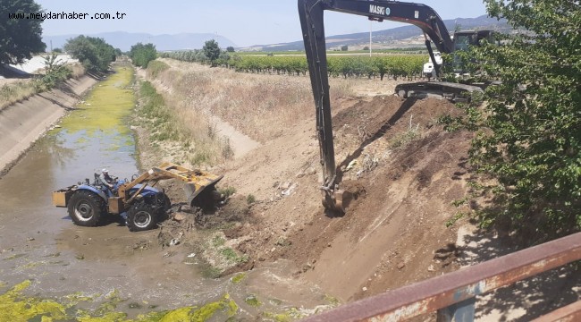 için temizlik çalışması başlattı. Ahmetli sağ sahil sulama kanalında kanal temizliğine