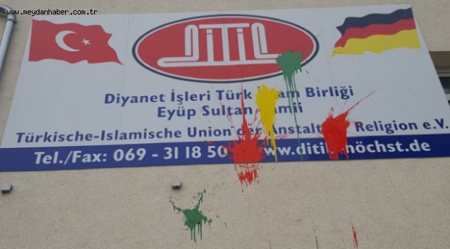 Frankfurt kenti yakınlarındaki Höchst beldesinde DİTİB Eyüp Sultan Camii'nin duvarlarına sarı kırmızı ve yeşil boya torbaları atıldı.