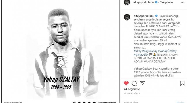 Avrupa'ya transfer olan ilk Türk futbolcu unvanına sahip, Türk sporuna birçok yenilik kazandırmış Altay’ın sembol isimlerinden Vahap Özaltay, ölümünün 55. yılında unutulmadı. Siyah-Beyazlı kulüp resmi hesaplarından efsane spor adamını anarken, Kulüp Başkanı Özgür Ekmekçioğlu ise yaptığı açıklamada Vahap Özaltay’ın aradan geçen yarım asrı aşkın süre sonrasında bile yeri doldurulamayan bir değer olduğunu kaydetti.