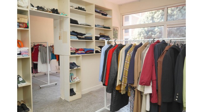Vatandaşların giyebileceği kalitede temiz giysilerin yer aldığı Altınova Mahalleevi’ndeki