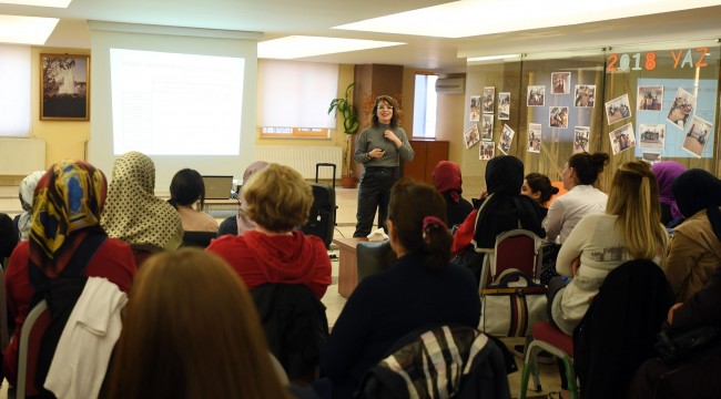 Sosyal Hizmet Uzmanı Aylin Alkan Koç tarafından Gençlik, Çocuk ve Aile Danışmanlık Merkezi'nde gerçekleşen seminerde, kadına yönelik şiddetle mücadele mekanizmaları, kadın erkek eşitsizliği, kalıp yargılar, ayrımcılık, kadına yönelik şiddetin türleri, şiddetin kadınlar ve çocuklar üzerindeki etkileri tek tek anlatıldı.