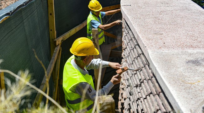 Kültür ve Tabiat Varlıkları Daire Başkanlığında görevli Yüksek Mimar Halil İbrahim Karagöz, “Ankara Kalesi Dış Kale Sur Duvarları Restorasyon Yapım İşi” kapsamında Uluslararası Icomos İlkeleri ve Venedik Tüzüğü’ne uyarak çağdaş restorasyon tekniklerinin uzman ekiplerce devam ettirildiğini belirterek, “Ankara Büyükşehir Belediyesi Kültür ve Tabiat Varlıkları Daire Başkanlığı olarak gerçekleştirmekte olduğumuz restorasyon çalışmaları hızla devam etmekte. Duvarlar üzerinde ayrılmalar, çatlaklar ve eğilmeler mevcuttu. Can ve mal kayıplarının yaşanmaması adına öncelikli olarak sağlamlaştırma çalışması başlattık. Yağışlardan dolayı duvarların nemlenmesi nedeniyle malzemeler üzerinde çiçeklenme ve tuzlanma meydana gelmiştir. Yapmış olduğumuz çalışmada sur duvarlarındaki belli başlı malzeme kayıpları, deformasyon, kararma, çiçeklenme ve tuzlanma gibi yapıya zarar veren ögeler bertaraf edilmekte. Sur duvarları üzerinde yer alan malzeme kayıpları kendi özgün dokusuna ait taşlarla tamamlanıyor. Çalışmalar kapsamında; hem cepheler üzerinde yer alan deformasyon hem de Roma Dönemi’ne ait devşirme taşların üzerinde kararmalar tarafımızca gideriliyor” dedi.