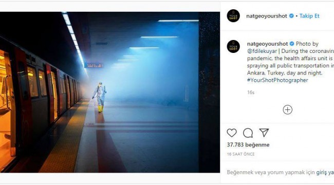Ankara Büyükşehir Belediyesinin koronavirüs mücadelesini görüntüleyen fotoğraf sanatçısı Dilek Uyar’ın Ankara Metrosu’nda çektiği fotoğraf karesi, 4 milyon takipçisi olan National Geographic Your Shot’un Instagram sayfasında yayınlandı. Tüm dünyanın gördüğü fotoğraf büyük beğeni aldı.