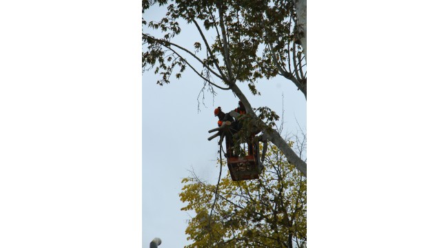 Ağaçlardan kesilen büyük dallar, yerde görevli olan ekipler tarafından daha küçük parçalara bölündü. Devrilme ve diğer binalara zarar verme olasılığı bulunan büyük dallar ise yine görevli ekipler tarafından budanarak ağaçların ömrü uzatıldı.