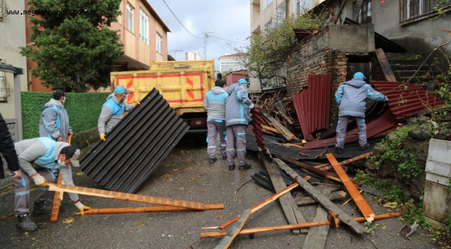 Fen İşleri, Temizlik İşleri, Zabıta ile Park ve Bahçeler Müdürlüğü ekipleri, vatandaşlardan gelen ihbarları değerlendirerek yaşanan olumsuzlukları sahada gidermeye devam ediyor. Ekipler şu ana kadar fırtınada devrilerek yolları kapatan ağaçlara, yıkılan duvarlara, hasar gören çatılara ve su baskınlarına anında müdahale etti. Zabıta Ekipleri, binalardan düşen çatı ve parçalara karşı ikazlarda bulunup gerekli yerlere şerit çekerek güvenlik önlemleri alıyor.