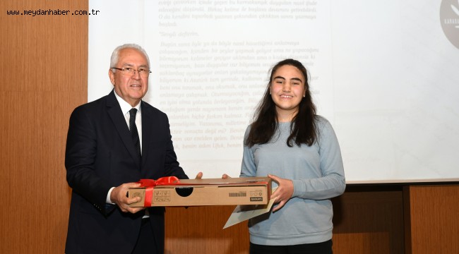 Karabağlar Belediyesi’nin 10 Kasım Atatürk’ü Anma Günü ve Atatürk Haftası kapsamında düzenlediği “Atatürk’ten Mektup Var” konulu kompozisyon yarışmasında dereceye giren öğrencilere ödülleri törenle verildi. Yıldız Kenter Kültür ve Sanat Merkezi’nde gerçekleştirilen törene, Karabağlar Belediye Başkanı Muhittin Selvitopu, meclis üyeleri, Belediye Başkan Yardımcısı Y. Güven Güngörmüş, Seçici Kurul üyeleri, öğretmenler, öğrenciler ve aileleri katıldı.