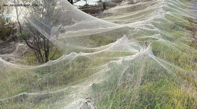 Sel sularından kurtulmaya çalışan örümceklerin yüksek zeminlere sığındıkları bu nedenle metrelerce sürüp giden kalın bir tabakanın ortaya çıktığı açıklandı.