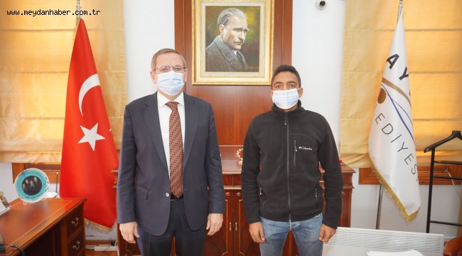 Belediye Başkanı Mesut Ergin sporcuyu kutladı, Başkan Mesut Ergin, Ayvalık’ta yaşayan