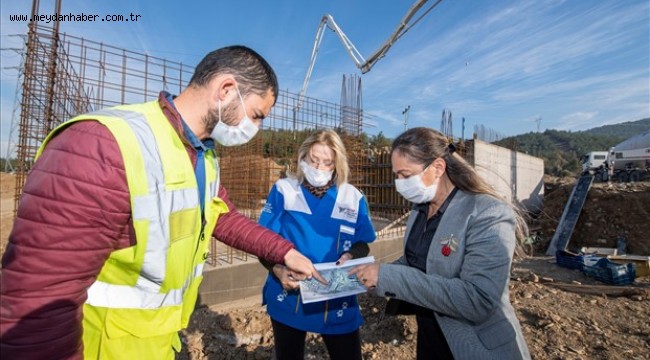 İzmir Büyükşehir Belediyesi’nin Bornova Gökdere'de Temmuz ayında temelini attığı Avrupa standartlarındaki Köpek Rehabilitasyon ve Sahiplendirme Merkezi'nde inşaat çalışmaları hızla sürerken proje hayvan hakları alanında çalışan sivil toplum örgütü temsilcilerinden tam not aldı. İzmir Büyükşehir Belediyesi Genel Sekreter Yardımcısı Yıldız Devran, Hayvan Hakları Federasyonu (HAYTAP) yöneticileri ile birlikte inşaat alanına giderek çalışmaları inceledi. Sahipsiz, yaralı, hasta, engelli ya da bakıma muhtaç hayvanların tedavi edileceği ve sahiplendirilmelerinin teşvik edileceği merkezde bin 500 köpeğin barınacağı bilgisini veren Devran, “Önümüzdeki yıl Temmuz ayında hizmete alacağımız bu merkezimizle birlikte sokak hayvanları için yürüttüğümüz çalışmaları daha kapsamlı hale getireceğiz. Yaklaşık 37 bin metrekarelik alanda kurulan bu merkezimizin büyük bölümü hayvanların sağlığı göz önünde bulundurarak yeşil alana ayrıldı. ‘Satın alma sahiplen’ sloganımız çerçevesinde yurttaşlarımız burada ortak bir alanda köpeklerle bir araya gelebilecekler” dedi.
