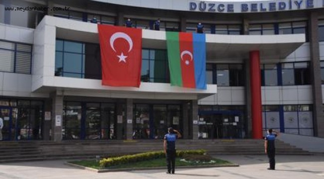 Düzce Belediyesi, Ermenistan'ın saldırıları karşısında Azerbaycan'a verdiği desteği göstermek için yan yana Türk ve Azerbaycan bayrağı astı.
