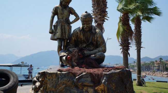 Yıprandığı için üç ay önce yerinden sökülen Balıkçı Dede ve Torunu heykeli Marmaris Belediyesi tarafından yenilendikten sonra eski yerine tekrar montajı yapıldı.