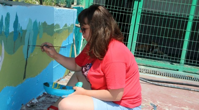 Çankaya Belediyesi Sahipsiz Sokak Hayvanları Bakım ve Rehabilitasyon Merkezinin duvarları, Ressam Başak Gözde tarafından renklendiriyor.
