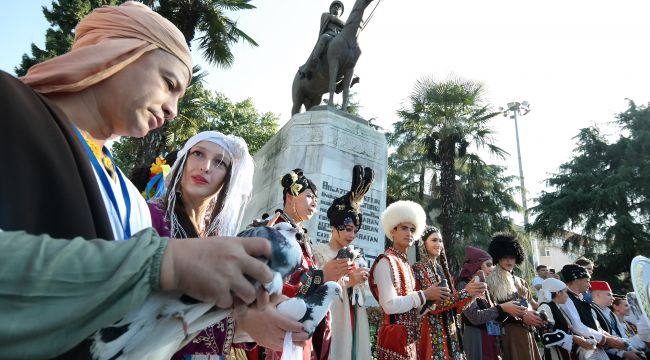 Bursa Büyükşehir Belediyesi Adına Bursa Kültür Sanat ve Turizm Vakfı (BKSTV) tarafından bu yıl 33.’sü düzenlenen Uluslararası Altın Karagöz Halk Dansları Yarışması, Atatürk Anıtı önünde yapılan tören ve kortej yürüyüşü ile başladı. Atatürk Anıtı’na çelenk sunan Büyükşehir Belediye Başkanı Alinur Aktaş, daha sonra yaptığı konuşmada, halk dansları yarışmasının dili, dini, rengi ne olursa olsun ayrım yapmadan, evrensel barışa ve kardeşliğe atılmış önemli bir adım olduğunu söyledi. Yabancı dansçılara katılımları nedeniyle teşekkür eden Başkan Aktaş, “Bir kültür harmanı olan Bursa’mızda dünyanın tanık olacağı bu renk cümbüşü, dünya halklarının dostluk ve hoşgörüsünün dansı olacak. Geleceği aydınlık Anadolu şehri, yerel değerlerini evrensele dönüştürme gayretini her fırsatta ortaya koyan Bursa’mızda, böyle bir organizasyona ev sahipliği yapmaktan son derece mutluyuz. Yarışma vesilesiyle şehrimize gelen tüm konuklarımıza hoş geldiniz diyorum. Altın Karagöz Halk Dansları Yarışmasının, esenlik mesajlarıyla dünya barışına katkı sunmasını diliyorum dedi.
