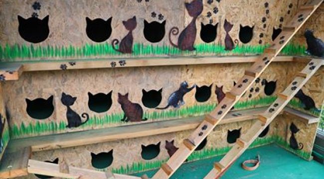 Başakşehir Belediyesi Sağlık İşleri ve Park Bahçeler Müdürlüklerinin ortak çalışmasıyla sokak kedileri sıcak bir yuvaya kavuşuyor. Belediye ekipleri, ahşaptan imal ettikleri ve etrafını tel örgülerle kapladıkları korunaklı kedi evlerini Başakşehir Belediyesi’ne başvuru yaparak kedi evi talep eden sitelere teslim ediliyor.