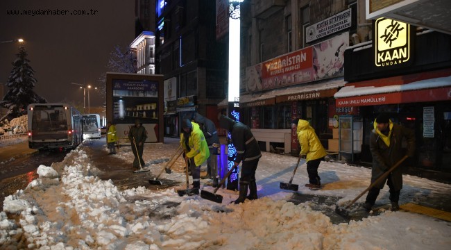 ışıklarına kadar devam eden kar yağışıyla birlikte, sahada yapılan karla