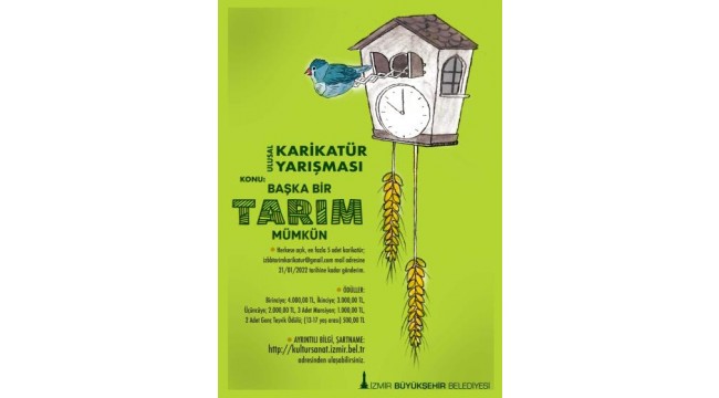 İzmir Büyükşehir Belediyesi “Başka Bir Tarım Mümkün” temasıyla ulusal karikatür yarışması düzenliyor. Başkan Tunç Soyer’in yerel tohumlar ve yerel ırkları yaygınlaştırarak kuraklıkla, küçük üreticiyi destekleyerek yoksullukla mücadele üzerine temellenen “Başka Bir Tarım Mümkün” anlayışı çizgilere konu oluyor. İklim krizi ve kuraklık tehdidine karşı toplumsal duyarlılığın güçlendirilmesinin hedeflendiği yarışmada kooperatifleşme, köy yaşamı, tarım teknolojisi, ekolojik denge, geleneksel üretim, yöresel ürünler, organik tarım, toprak ve su güvenliği, zirai sulama, yaban hayatı, gıda israfının önlenmesi gibi tarımsal üretimin alt başlıkları da işlenebilecek.
