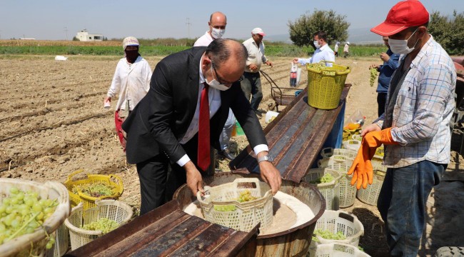 Turgutlu Belediye Başkanı Çetin Akın, üzüm sergi alanını ziyaret ederek hasat yapan çiftçilerle bir araya geldi. Başkan Çetin Akın ayrıca üreticilerle birlikte üzüm hasadına da katıldı.