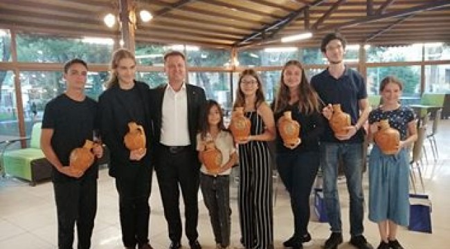 Menemen Belediye Başkanı Serdar Aksoy Uluslararası 1. İzmir Piyano Festivali için dünyanın çeşitli ülkelerinden gelen genç piyanistleri Menemen’de ağırladı, Menemen’in sembolü olan testilerden hediye etti.