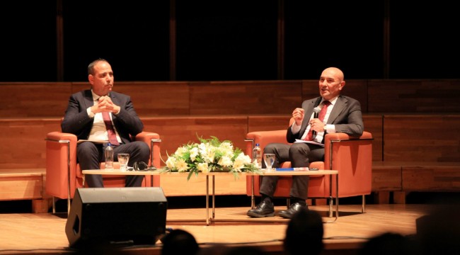 10 Aralık İnsan Hakları Günü’nde düzenlenen panelde Başkan Aras ile birlikte İzmir Büyükşehir Belediye Başkanı Tunç Soyer, Karşıyaka Belediye Başkanı Dr. Cemil Tugay ve KKTC Lefkoşa Türk Belediyesi Başkanı Mehmet Harmancı konuştu.