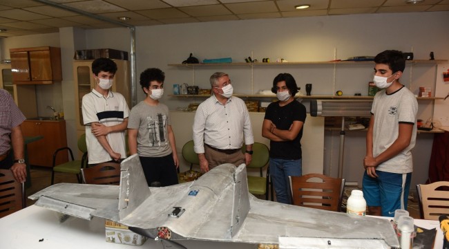 TÜBİTAK Liseler Arası İnsansız Hava Araçları Yarışmasına katılmak için model uçak tasarlayan Hayrettin Karaman İmam Hatip Lisesi öğrencilerine moral ziyaretinde bulunan Belediye Başkanı Dr. Halil İbrahim Aşgın, genç mucitlere destek verdi.