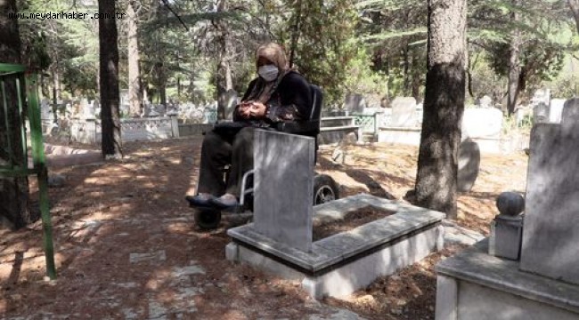 Gülcü Mezarlığındaki yol yapımının tamamlanmasının ardından acılı anne engelli sandalyesiyle 17 yıl önce kazada kaybettiği kızının kabrine giderek dua etti.