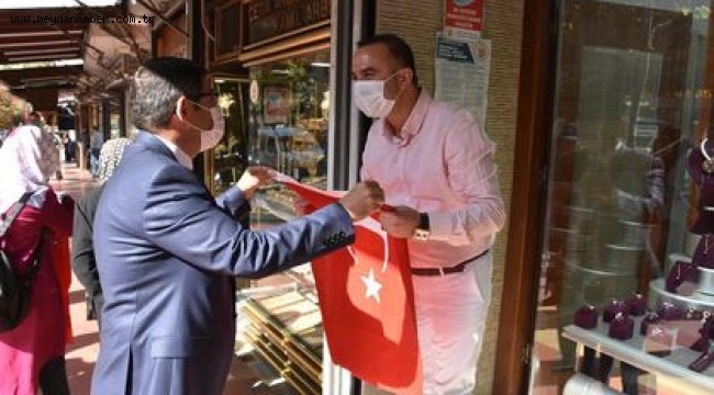 BAŞKAN ÇELİK VATANDAŞLARA TÜRK BAYRAĞI DAĞITTI