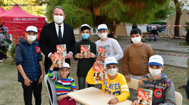 Çiğli Belediye Başkanı Utku Gümrükçü, kısa süre önce yaşanan İzmir depremi sonrası en çok hasarın meydana geldiği Bayraklı’da kurulan Çadır Kenti ziyaret ederek Ulu Önder Gazi Mustafa Kemal Atatürk’ü ebediyete intikalinin 82. yıl dönümünde çocuklarla birlikte andı.Bayraklı’daki Çadır Kente giden Başkan Utku Gümrükçü, çocukların çizdiği ve Çiğli Belediyesi Dayanışma çadırında açılan Atatürk Sergisini gezdi. Sergilenen resimlerin hikayelerini tek tek dinledi. Atatürk’ün tarihteki başarılarını uzun uzun anlattı, 10 Kasım anısına çocuklara Nutuk hediye etti.