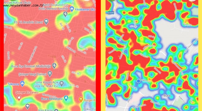 Tedbirlerin en üst düzeyde tutulması için tüm birimlere talimat veren Başkan Kılıç, Hayat Eve Sığar uygulaması üzerinden Buca’nın 11 Kasım 2020 zamanındaki vaka haritasıyla 22 Aralık 2020’deki vaka haritasını paylaştı.