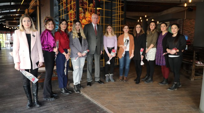 Kadınlar Günü’nü kutlayan Başkan Kurt, gazetecilere karanfil takdim etti.