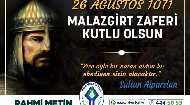 “Türk tarihi hiçbir milletin tarihi ile kıyaslanamayacak kadar eşsiz zaferlerle doludur. Bu zaferlerden biri de 26 Ağustos 1071’de kazanılan Malazgirt Zaferi’dir. Bu zafer öyle bir şahlanıştır ki; Selçuklu sultanı Alparslan ve cengâver ordusu bu zaferle “Anadolu”nun tapusunu ebediyete kadar Müslüman Türk milletine hediye etmiştir.