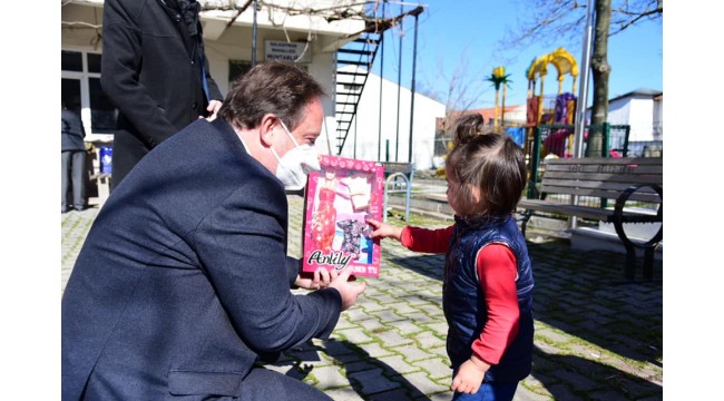 vatandaşlar ile bir araya gelen Orkan, mahalle çocuklarına hediyeler verdi. Başkan Orkan