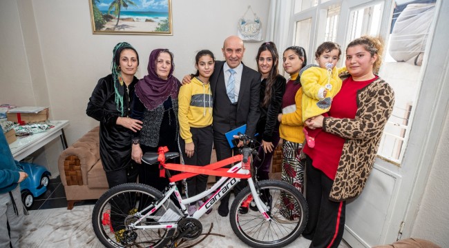 İzmir Büyükşehir Belediye Başkanı Tunç Soyer bugün Konak 2. Kadriye Mahallesi'nde oturan 13 yaşındaki Ayşe Deniz’i evinde ziyaret ederek Deniz’e bisiklet hediye etti. İzmir Büyükşehir Belediyesi başarılı 100 öğrenciye bisiklet dağıtma kararı almıştı.