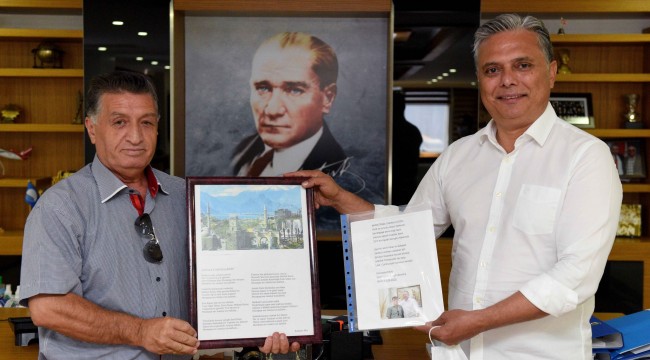 Antalyalı Şair Ramazan Ekin, 30 yıllık arkadaşı Muratpaşa Belediye Başkanı Ümit Uysal’ı ziyaret ederek onun için yazdığı şiiri hediye etti.