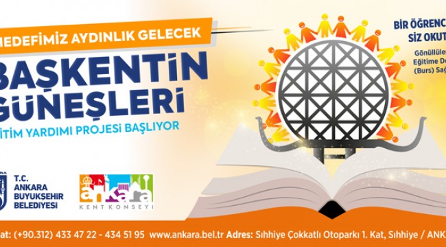 “Başkent’in Güneşleri Projesi” ile maddi durumu olmayan, ikametgâhı Ankara’da olan ya da örgün eğitim sistemi içinde yer alan üniversite öğrencilerine 12 ay boyunca eğitim desteği sağlanması amaçlanıyor.