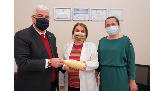 Hatalıkları Uzm. Dr. Emel Hancı’yı makamında ziyaret ederek 14 Mart Tıp Bayramlarını