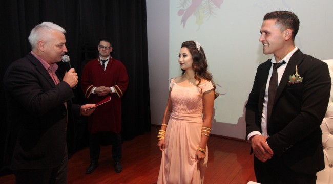Evlenen çift ise davetlerini kırmayıp bu mutlu günlerinde kendilerini yalnız bırakmadığı için Başkan Bilgin'e teşekkür etti.