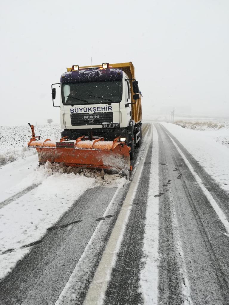 Yılın ilk karının Başkent’e yağmasıyla birlikte teyakkuza geçen Ankara Büyükşehir Belediyesi ekipleri, sahada karla mücadele mesaisine başladı.