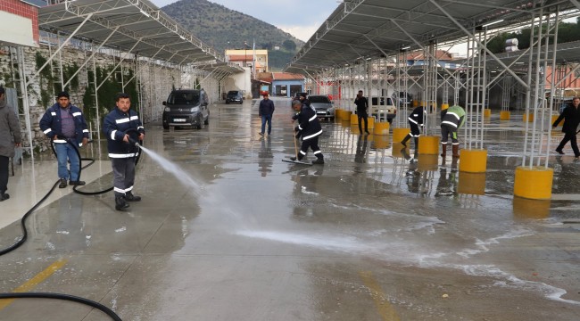 Bayındır Belediyesi Çevre Koruma ve Kontrol Müdürlüğü ile Temizlik İşleri Müdürlüğü ekiplerinin ilçe genelinde yürüttüğü temizlik ve dezenfekte çalışmaları da hız kesmeden devam ediyor. İlçede merkezde ve diğer mahallelerde açılan pazarlarda sadece sebze meyve satışına izin verilirken Pazar kurulmadan önce ve Pazar kurulduktan sonra temizlik ve dezenfekte çalışmalarına büyük önem veriliyor.