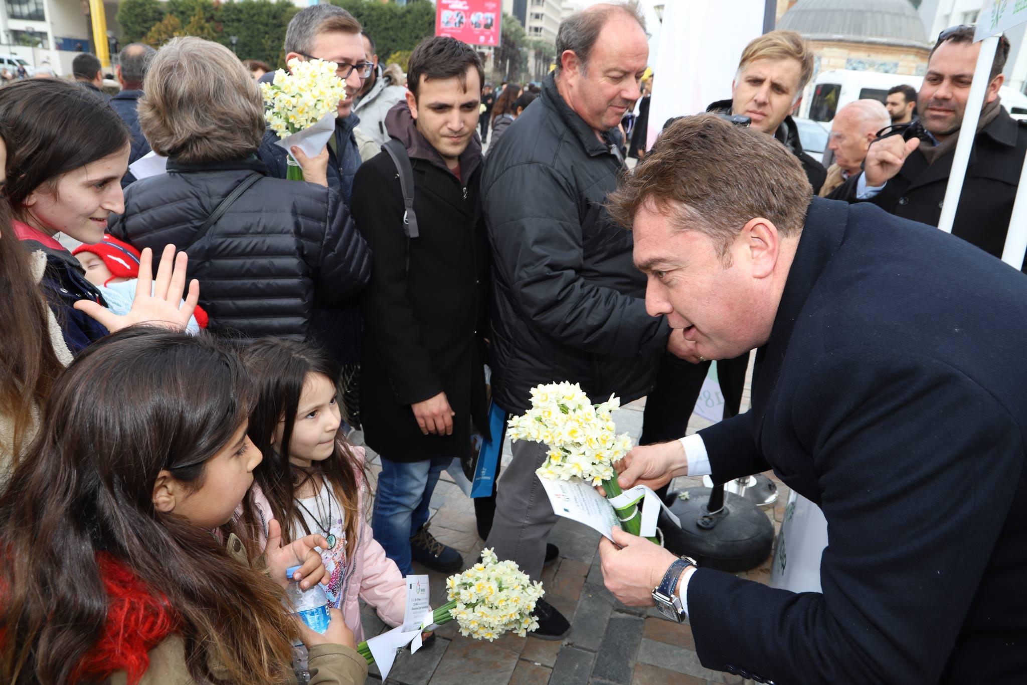 Konak Meydanı’nda yaklaşık 2500 adet nergisi İzmirliliere dağıtan Demirezen yaptığı açıklamada “Sevgililer gününde hem Turan Mahallemizde yetiştirilen; kokusuyla ve dayanıklılığıyla büyük rağbet gören nergisimizi tanıtmak, hem de 16-19 Nisan’da düzenleyeceğimiz 23. Uluslararası Çiçek Festivalimizin duyurusunu yapmak amacıyla böyle bir organizasyon düzenledik. Hem üreticimizin hem de halkımızın yüzünü güldürdük. Bayındır çiçekçiliğin her alanında iddialı. Herkesi Nisan ayındaki festivalimize bekliyoruz.” dedi.