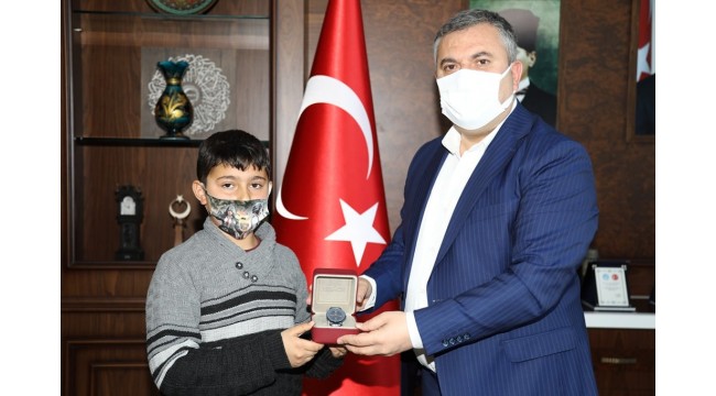 Belediye Başkanı Demirbaş, salgın döneminde öğrendiği Kur'an'ı hatmeden öğrenciyi ödüllendirdi