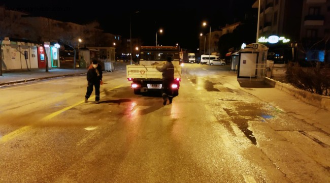 şehir Merkezinde buzlanma olan yollarda tuzlama çalışması yaptı. Menteşe
