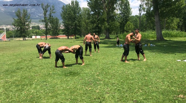 depar ve kondisyon çalışmaları yapan 8 kişiden oluşan Yağlı Güreş Takımı,