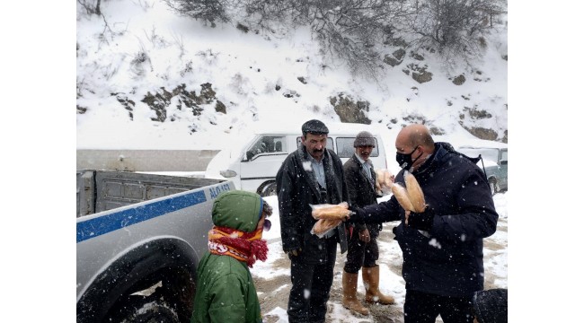 Bergama'da zabıta Yukarıada'ya ekmek dağıttı