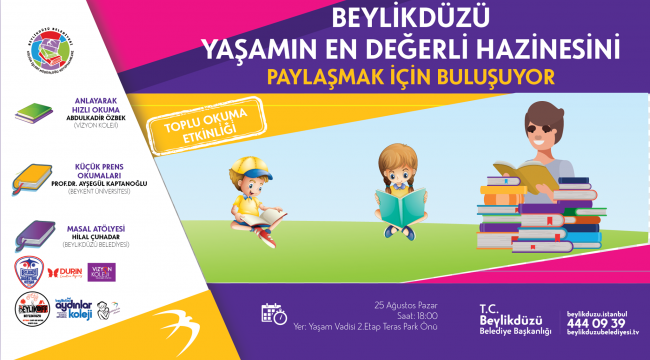 Beylikdüzü Belediyesi, ilçede okuma alışkanlığını geliştirmek, pekiştirmek ve farkındalık yaratmak amacıyla yeni bir projeye imza attı. Beylikdüzü Yaşam Vadisi 2. Etap’ta 25 Ağustos Pazar günü saat 18:00’da düzenlenecek ve her yaş grubuna hitap edecek okuma etkinliklerinde, kitap okumayı seven ve okumaya önem veren vatandaşların bir araya gelerek sosyalleşmesi, ortak faaliyette bulunması amaçlanıyor.