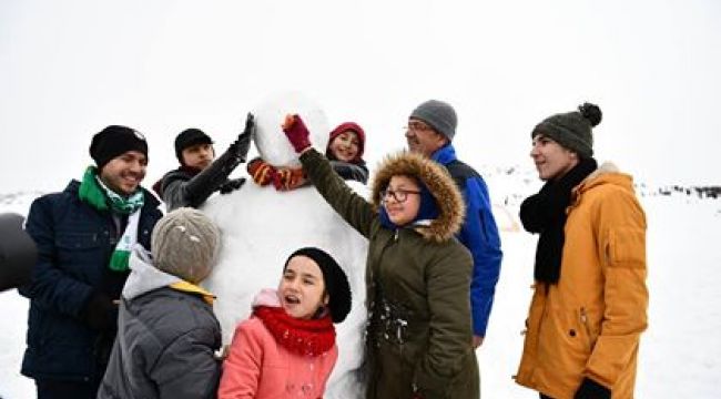 1670 rakımlı Beypazarı Kirazyanımevkiine çocuklarıyla gelen binlerce vatandaş kartopu oynadı, kardan adam yaptı, kızak kaydı.