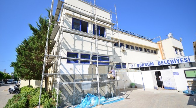 Bodrum Belediyesi Binnaz Karakaya Spor Salonu dış cephe yenileme çalışmaları başladı.