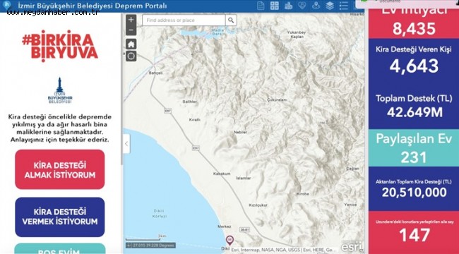 Öte yandan İzmir Büyükşehir Belediyesi 30 Ekim depreminde evleri orta hasarlı olan 629 ailenin 5’er bin liralık kira destek ödemesini tamamladı. Bu hafta içinde evleri orta hasarlı olan 40 ailenin kira yardımı da banka hesabına yatırılmış olacak. Büyükşehir, başvuru ve değerlendirmelere göre kira yardımına devam edecek. İzmir Büyükşehir Belediye Başkanı Tunç Soyer, orta hasarlı ev tespiti yapılmış aileler için belediye bütçesinden her bir haneye 5’er bin liralık kira desteği verileceğini söylemiş, bu kapsamda 35 milyon liralık bir kaynak ayıracaklarını açıklamıştı. Ağır hasarlı binalardaki 179 haneye 10 bin liralık destek ödemesini de kendi bütçesinden yapan Büyükşehir, bu hafta 50 ağır hasar tespiti yapılmış daire sahibinin kira yardımını da banka hesaplarına yatırmış olacak.