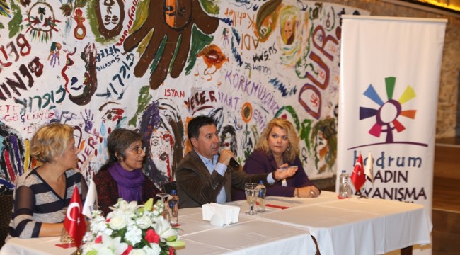Bodrum Belediyesi olarak Toplumsal Cinsiyet Eşitliği Şefliğini kurduklarını kaydeden Başkan Aras, “Kadın Dayanışma Derneğimiz bu iş için çok büyük katkı veriyor, emek veriyor ama Bodrum'da 170 bin nüfusun 90 bini kadınlardan oluşuyor. Yani bu işi daha geniş kitlelere yaymamız gerekiyor. Onları da kucaklamamız gerekiyor. Bodrum'u çocuğa, kadına, sahipsiz hayvana, herkese karşı şiddetsiz bir kent haline getirmeliyiz. Biz yerel yönetim politikamızı hep bunun üzerine kurmaya çalışıyoruz.”ifadelerini kullandı.